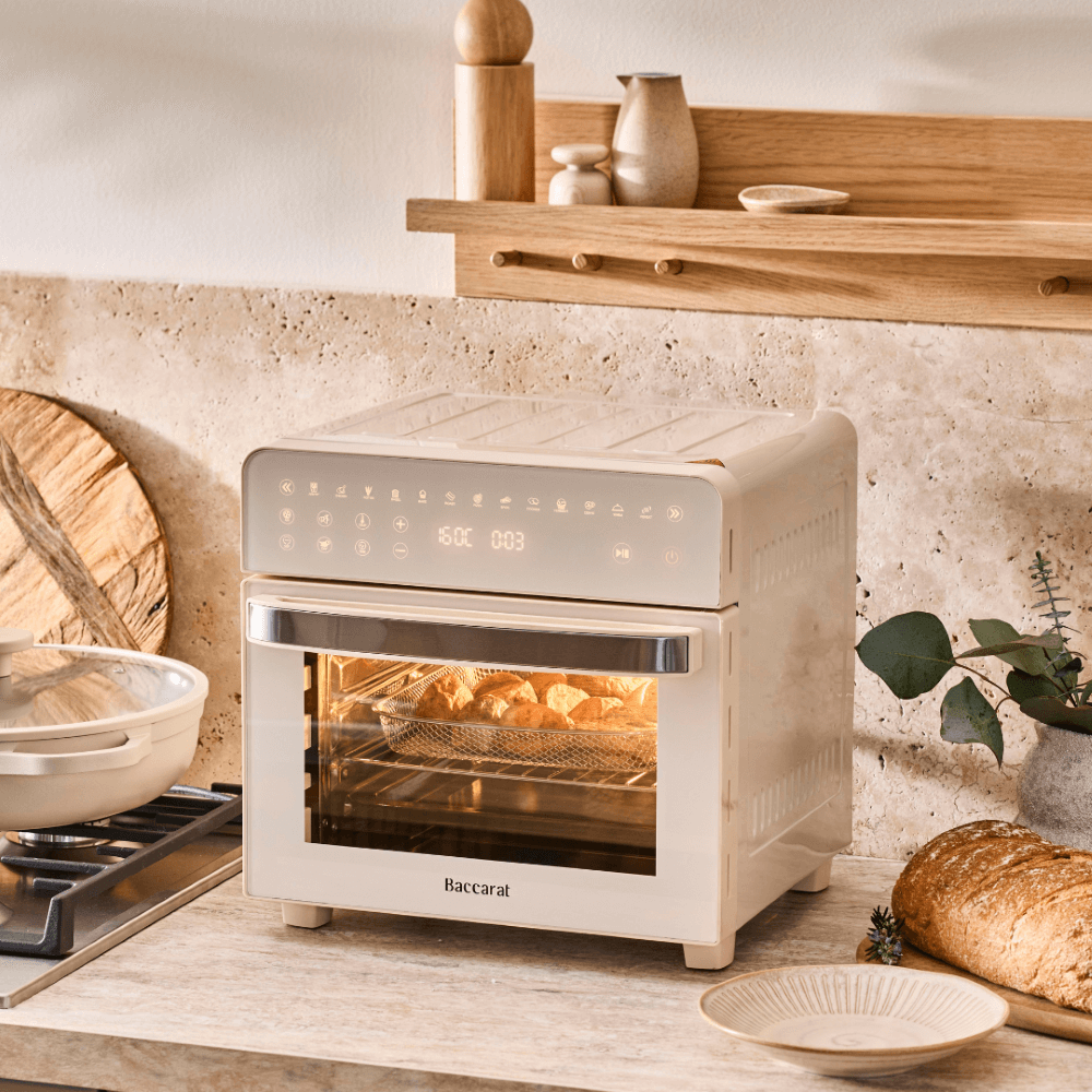 SAVE 50% off our best-selling kitchen appliances, like the Baccarat® NOOK™ 15L Cream Airfryer RRP $399.99, NOW only $199.99