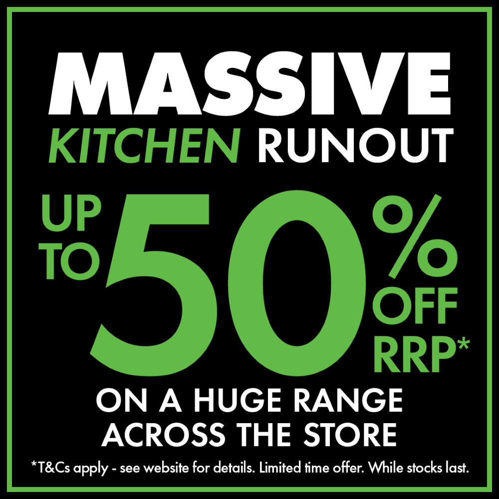 SAVE up to 50% OFF in the Massive Kitchen Run out at House.